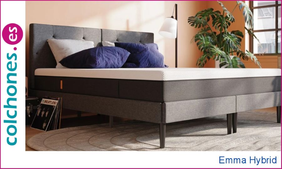 El primero de los modelos a la venta en Colchones.es que aparece como uno de los mejores colchones OCU 2024 es el Hybrid Premium de la marca Emma. Es un colchón de muelles ensacados de firmeza medio baja, de 3 sobre 6. Cuenta con refuerzo perimetral y funda termorreguladora que evita que la humedad se concentre en el interior.