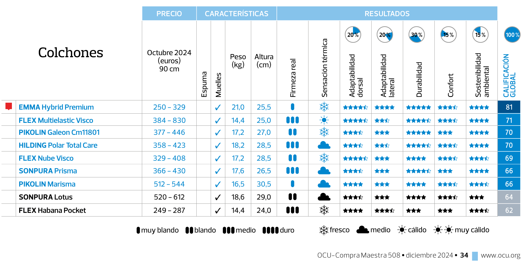 Listado colchones OCU 2025, disponibles en Colchones.es