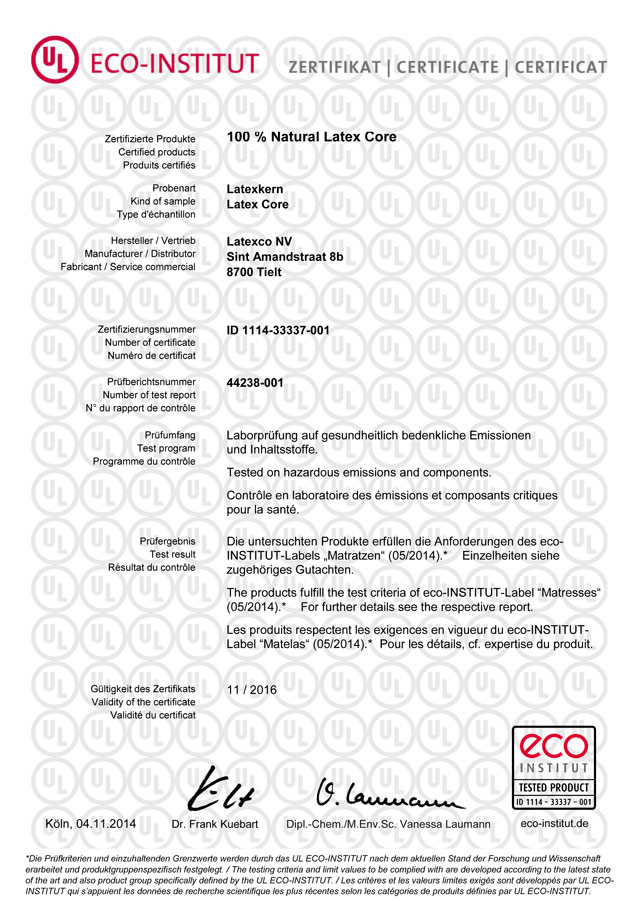 Pero Latexco lo ha conseguido, y para producir el Látex natural 100 hemos utilizado este bloque con 100% Latex Natural Core. Lo puedes comprobar en este certificado: