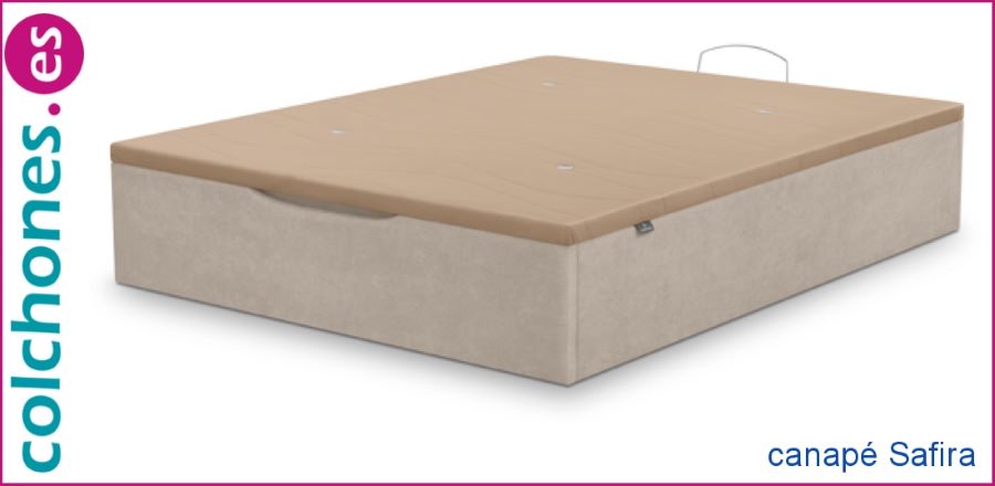 Los canapés abatibles de Sonpura que se incorporan al catálogo de Colchones.es son dos modelos con muchas similitudes. La diferencia entre ellos está en que el canapé Kaida cuenta con tapa tapizada en tejido 3D y contorno tapizado en tela o polipiel. El canapé Safira no tiene esta opción de acabado.