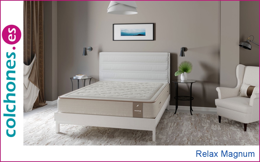 Si buscas un colchón premium a un precio excepcional, el colchón Magnum es uno de los modelos de gama alta de Relax. Se puede elegir en dos firmezas medio y medio alta. Es de muelles ensacados que aportan hasta 7 zonas de confort diferenciadas. Su tapizado es en tejido Damasco de gran calidad y belleza. Y en los acolchados por ambas caras dispone de viscoelástica con gel, fibras naturales de lino y lana y espumación HR.