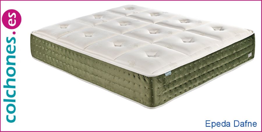 El colchón Epeda Dafne es un colchón de alta gama compuesto por un bloque central de muelles ensacados y con acolchados de espumación HR y fibras hipoalergénicas. Tiene una firmeza medio dura, de 4 sobre 6 y se recomienda para deportistas. Está tratado contra los ácaros.
