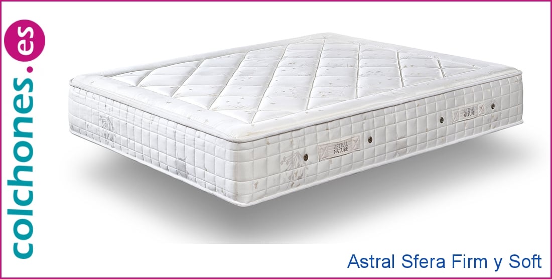 También puedes comprar el colchón Sfera Firm y Soft de la gama Astral Nature compuesto de un núcleo de muelles ensacados y acolchados diferentes en cada cara. Comparten la capa de Sojablock y Terlenka ECO. Se completa en la cara invierno con una capa de lana y la cara verano con una capa de algodón. El descuento en este caso es del 15%.
