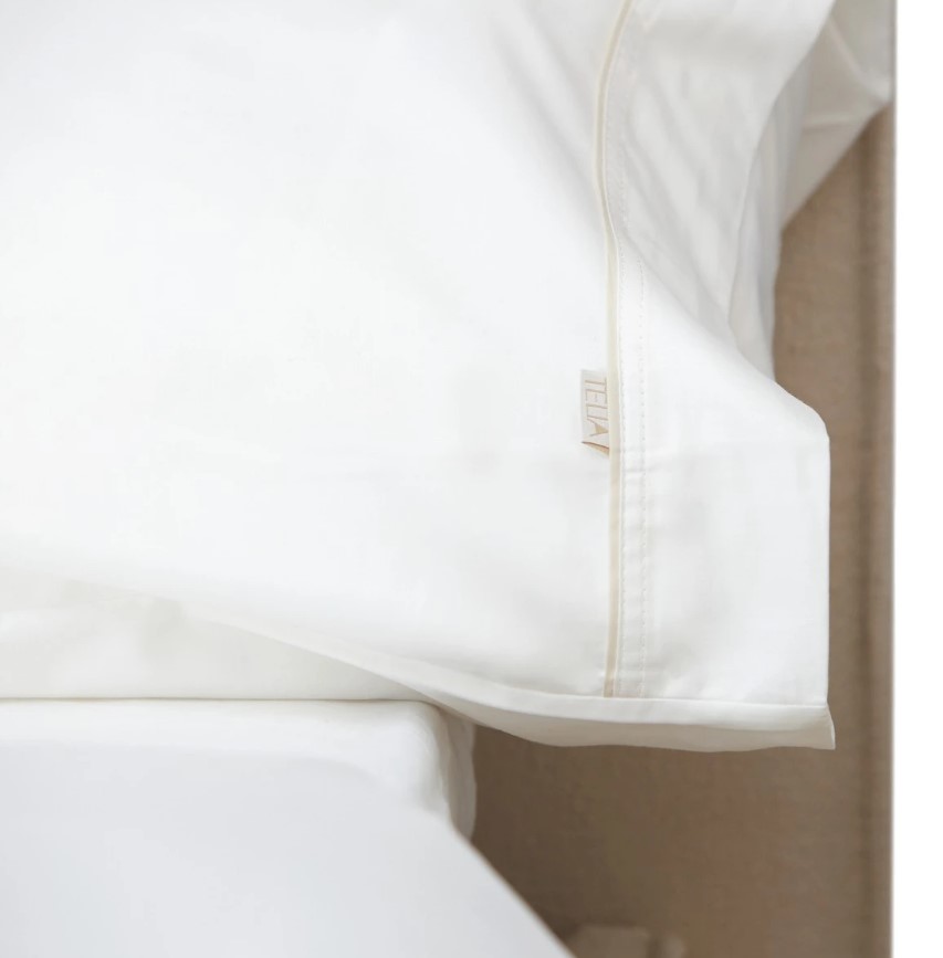 El juego de sábanas Satén 600 hilos de Estelia está confeccionado con tejido 100% algodón de 130gr/m2 de gramaje y una calidad de satén 600 hilos, que garantiza una calidad inigualable. Es un básico elegante que resulta fresco y muy suave. Acabado en blanco, con detalle del bies a contraste.